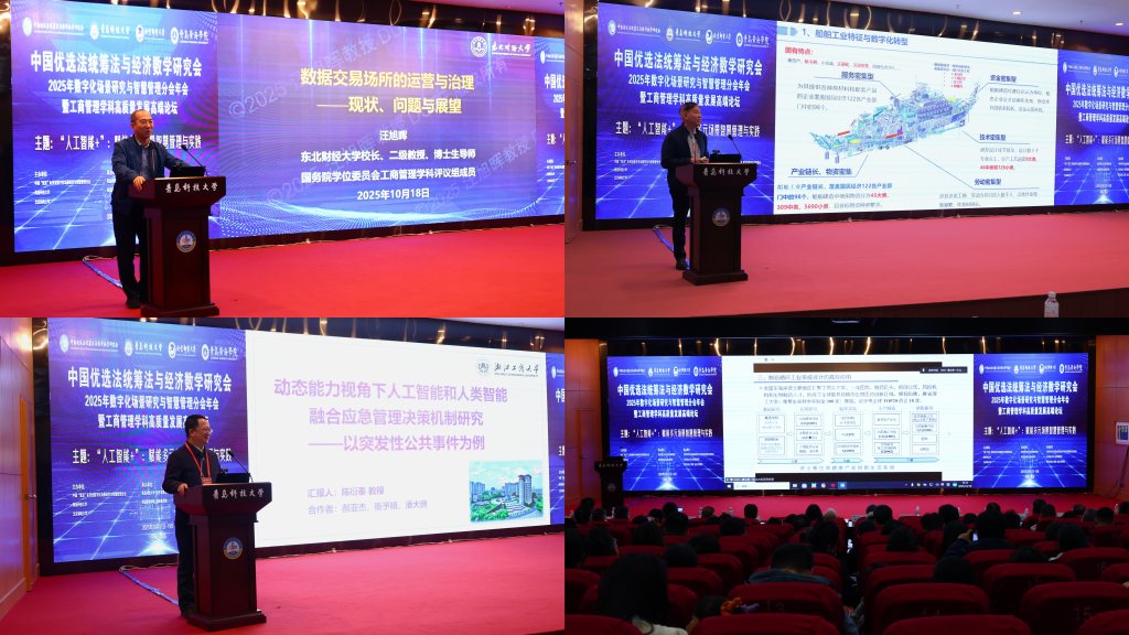东北财经大学校长汪旭晖以《数据交易场所的运营与治理:现状、问题与展望》为题,分析了当前数据交易场所的运行机制与治理难点,并对未来发展提出路径建议。江苏科技大学原党委书记葛世伦交流了《船舶制造中的数智技术》,重点介绍了数智技术在船舶设计与制造中的具体应用与创新实践。浙江工商大学副校长陈衍泰以《动态能力视角下人工智能和人类智能融合应急管理决策机制研究——以突发性公共事件为例》为题,探讨了人机智能协同如何提升应急决策的效能与适应性。中国工程院院士、东北大学副书记、副校长唐立新分享了《基于DAO & LLM的制造循环工业系统设计仿真及应用》,展示了分布式自治组织与大语言模型在工业系统仿真中的前沿探索与实际成效等。