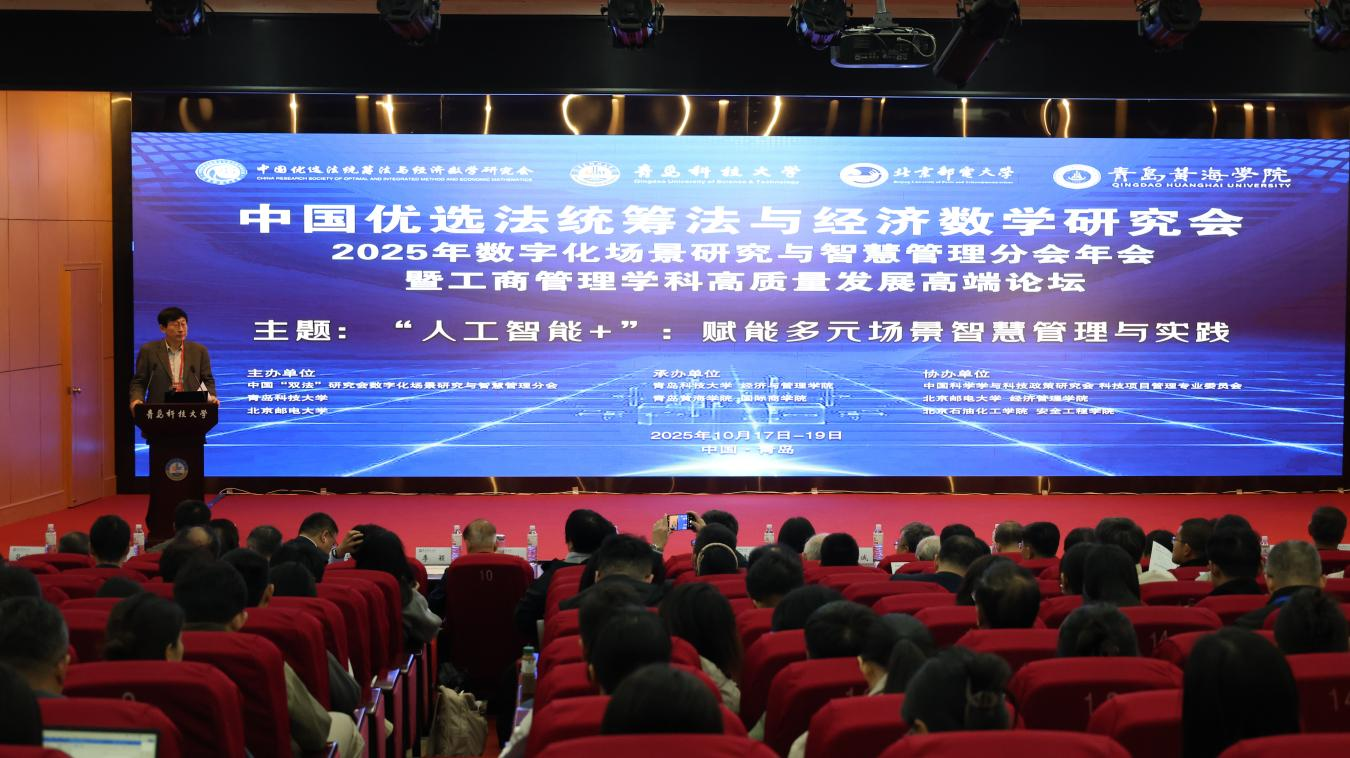 10月18日,中国优选法统筹法与经济数学研究会2025年数字化场景研究与智慧管理分会年会暨工商管理学科高质量发展高端论坛在必赢bwin线路检测中心举行。本次大会由中国“双法”研究会数字化场景研究与智慧管理分会、必赢bwin线路检测中心、北京邮电大学主办,必赢bwin线路检测中心、青岛黄海学院国际商学院承办。学校副校长李金红出席开幕式并致辞。