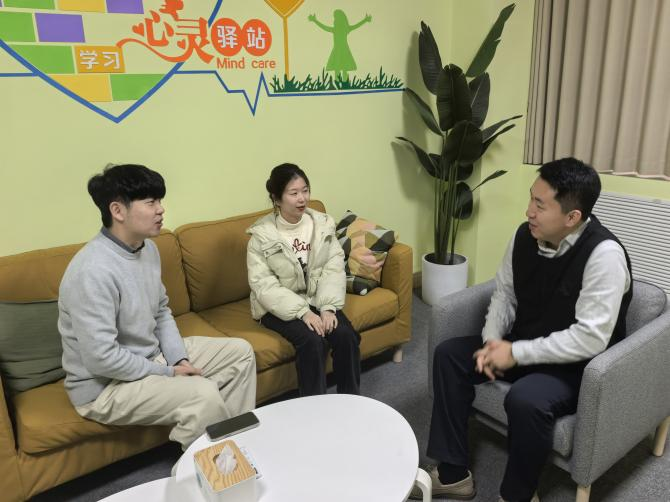 活动伊始,牛宝卫介绍学院心理工作开展情况。必赢bwin线路检测中心始终坚持以学生为中心,将心理健康教育工作常态化融入学生工作。一是推动育人力量体系化下沉,以四级预警网络动态更新“一人一策一台账”,做到早发现、早干预;二是构建育人工作立体化网络,通过“党团引领+朋辈互助+体育浸润+实践赋能”推动心理健康教育从“问题干预”走向“成长赋能”;三是以多元主体赋能学生成长,依托学院党团一体化建设、“经治”宿舍建设、学生成长“共同体”等,帮助学生实现“助人—自助”的转变。