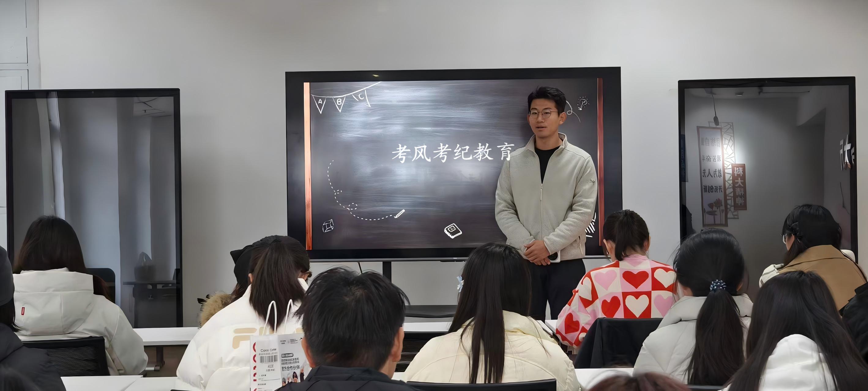 随后,吕欣哲聚焦考风考纪教育,为同学们细致、深刻梳理。他强调,考试是检验学习成果的重要途径,严肃考风考纪是维护公平正义的关键。吕欣哲向同学们重申了校纪校规中关于考试违纪作弊的相关规定及处理办法,明确告知违纪作弊行为带来的严重后果,警示大家切勿抱有侥幸心理。他鼓励同学们以诚信为本,认真备考、诚信应考,用真实的成绩展现学习成果,共同营造公平公正、严谨有序的考试氛围。吕欣哲还用“仰望星空与脚踏实地”,引导同学们在期末冲刺阶段扎实复习,以平和心态应对考试压力,同时珍惜大学平台资源,在坚守规则中实现成长。