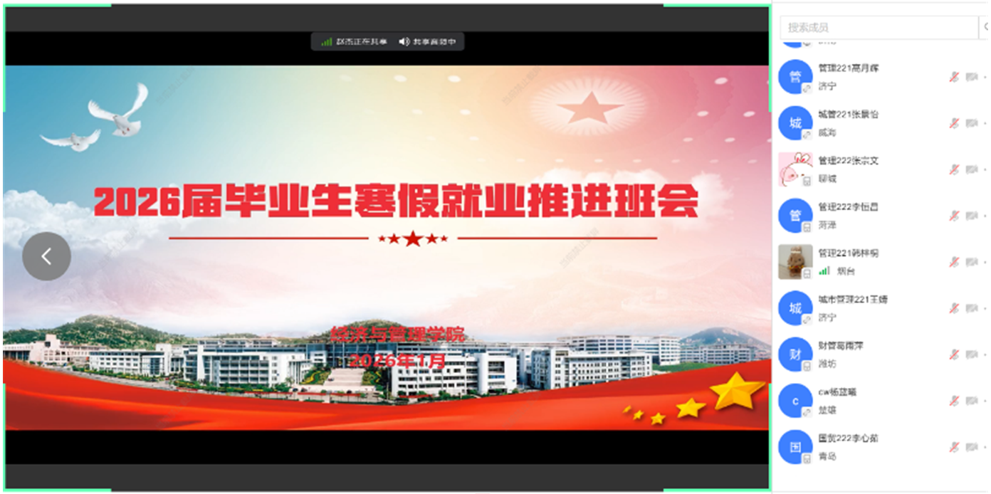 为深入贯彻落实学校“寒假促就业暖心行动”部署,抢抓寒假求职黄金窗口期,切实筑牢毕业生就业服务防线,1月24日下午,必赢bwin线路检测中心组织开展2026届毕业生寒假就业推进会。学院学工办主任付继航,毕业年级辅导员赵杰及2026届毕业生参加会议。