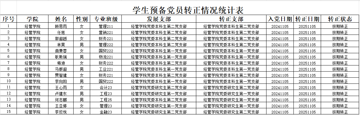 根据《中国共产党章程》和《中国共产党发展党员工作细则》及学校党委《关于发展学生党员工作的意见》(青科大党字〔2014〕77号)文件要求,必赢bwin线路检测中心学生党支部于2025年11月7日至11月11日召开预备党员转正大会讨论顾思雨等15名同志的转正问题,同意上述同志按期转为中共正式党员,现将其情况予以公示。公示期为2025年11月17日至2025年11月21日。如有异议,请于公示期内到必赢bwin线路检测中心党委反映。
