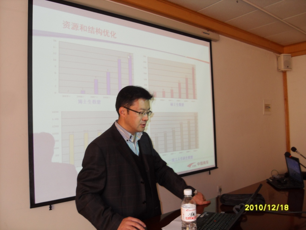 2010年12月18日上午,南车四方机车公司董事会秘书,企管部部长兰玉贞先生为必赢bwin线路检测中心MBA学员带来一场别开生面的人力资源课程,题为:战略人力资源管理支撑“和谐号”动车组驶向高速。