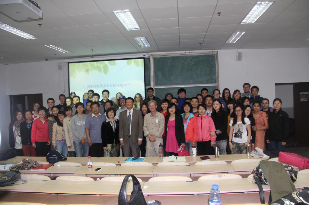 应必赢bwin线路检测中心MBA教育中心邀请,5月18日,山东泰山学者曹杰教授为必赢bwin线路检测中心2012级MBA全体学员及40多名加拿大来访学员带来题为“中国生物制药企业发展环境分析”的学术报告,报告会由袁晓莉教授主持。