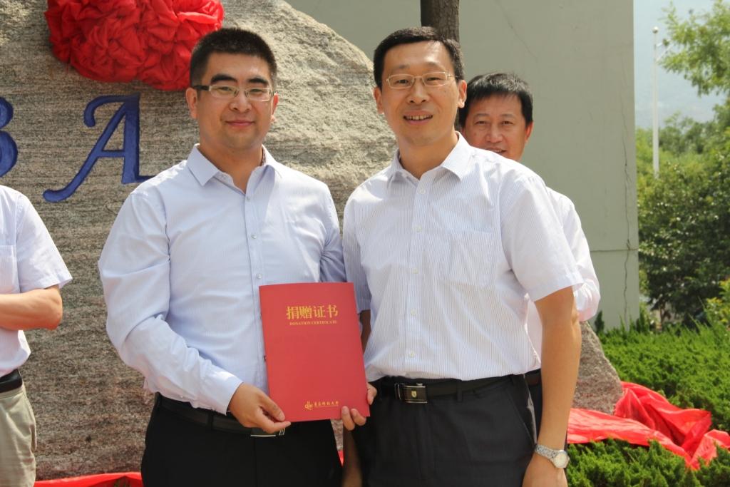 接着,刘光烨与校友代表宫平强共同为MBA纪念石揭幕。聂广明为2010级校友颁发了捐赠证书,全体人员合影留念,仪式圆满结束。