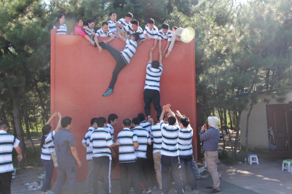 拓展从破冰和团队文化建设开始,全部学员分成精英、战车、无限、女·汉子四支队伍,互相竞争合作,学员们积极挑战自我,挖掘自身潜力,同时注重团队合作,勇于承担责任,克服重重困难,顺利地完成了 “极速60秒”、“有轨电车”、“逃生墙”、“团队战鼓”等一系列拓展挑战项目。