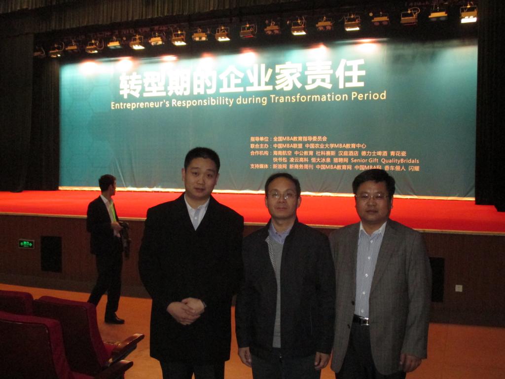 由中国MBA联盟和中国农业大学联合主办的“第七届中国MBA领袖年会”于2013年11月22日-24日在中国北京隆重召开,本届论坛以“转型期的企业家责任”为主题,诚邀政界要员、商界精英、著名专家学者、优秀MBA学员等,共同探讨在中国改革和转型期企业家们带来的推动力。必赢bwin线路检测中心MBA中心李勋来教授、联合会李守峰副主席、严凤辉副主席赴京参加本次会议。