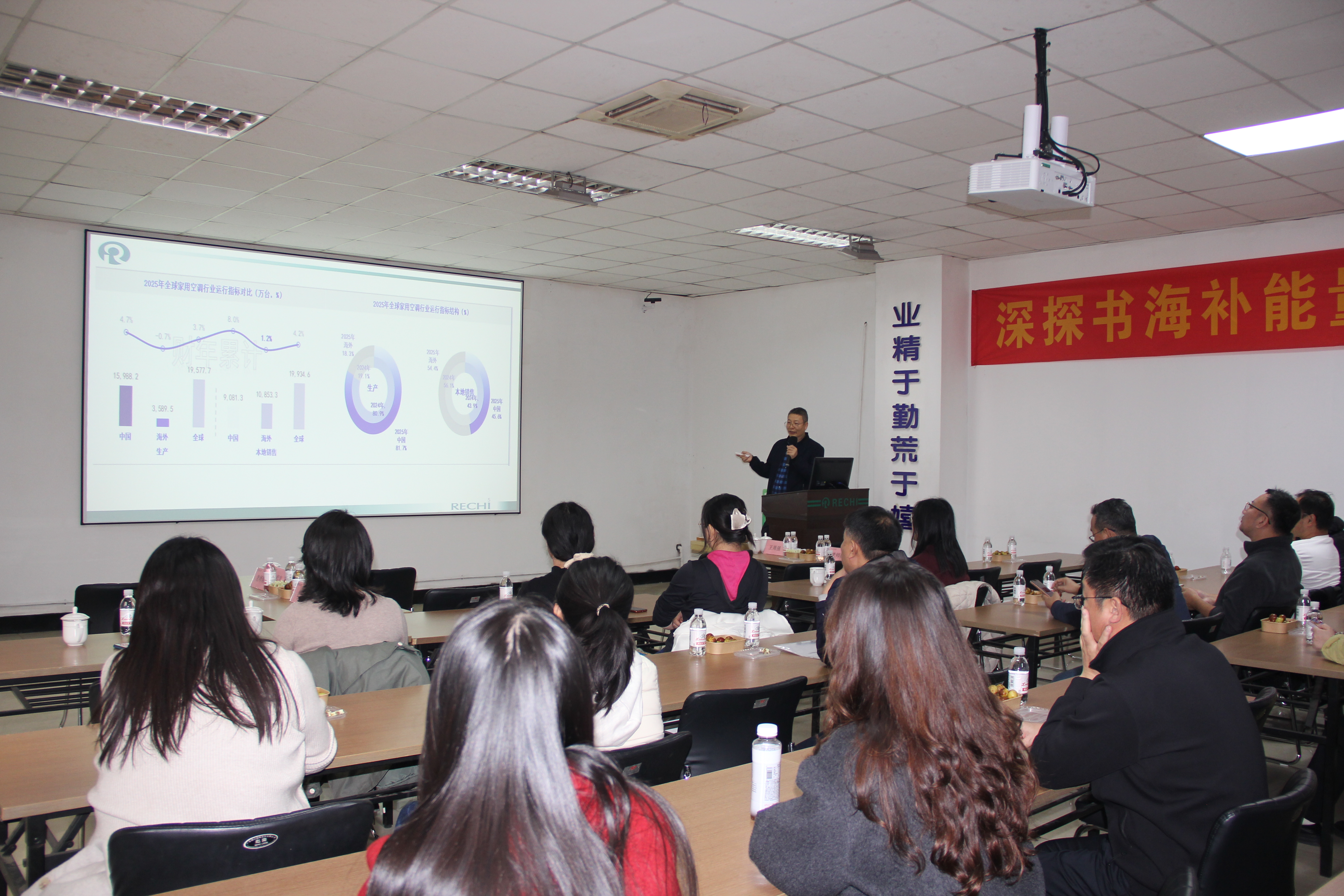 下午,师生们抵达了瑞智(青岛)精密机电有限公司。瑞智是全球第四大转子压缩机企业,其产品广泛应用于空调、热泵、干衣机等领域,外销份额在国内同行业中位居第二。在2024级MBA学员、瑞智(青岛)精密机电有限公司总经理王周强的带领下,大家对压缩机生产线和研发中心进行了深入参观。