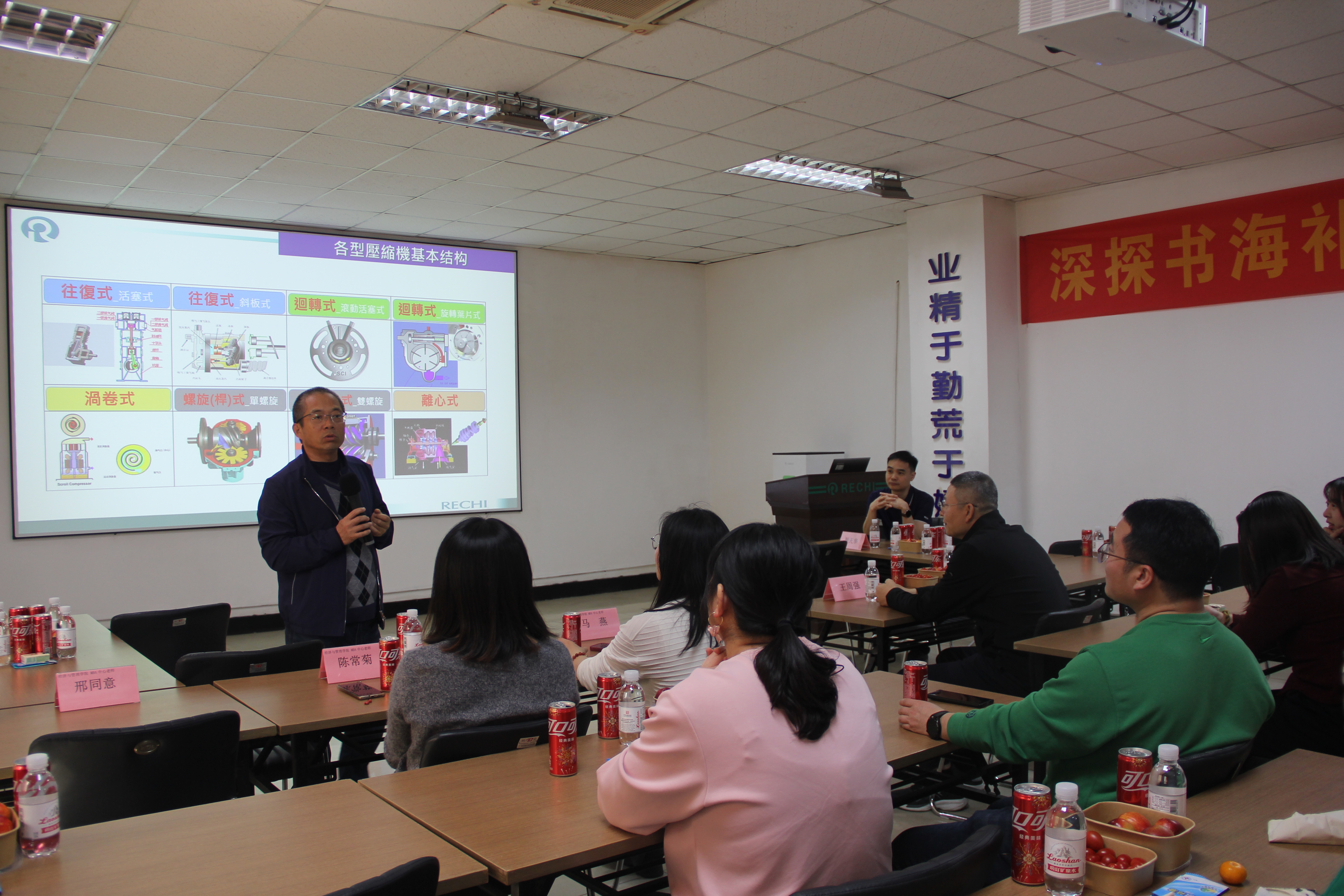 参观结束后,瑞智(青岛)精密机电有限公司副总经理周天华为全体师生从压缩机分类、回转式压缩机构造、回转式压缩机工作原理、压缩机系列创新应用等四个方面进行了详细的产品介绍,并与在座师生进行了深入交流。
