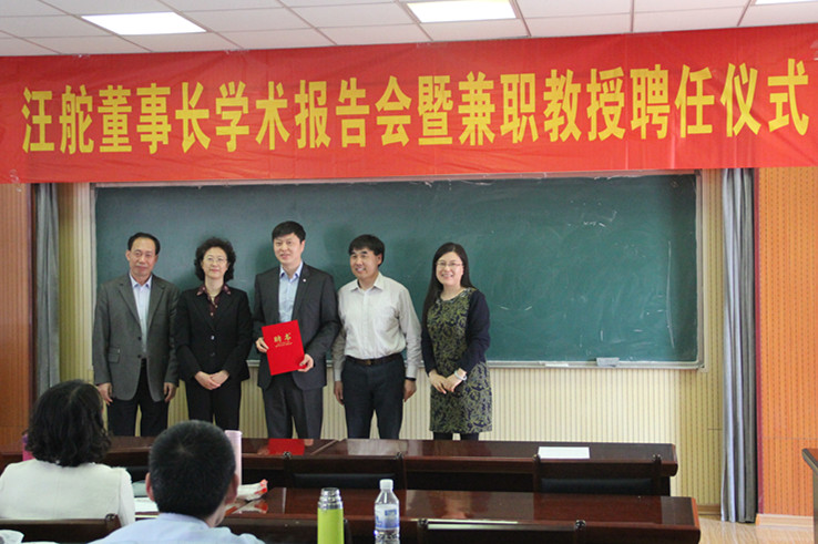 4月23日下午3点,汪舵董事长学术报告会暨兼职教授聘任仪式在必赢bwin线路检测中心必赢bwin线路检测中心505室举行。必赢bwin线路检测中心副校长张淑华,组织部部长聂法良,纪委副书记丛海燕,中德联合集团董事长、青岛西海岸发展集团副总经理汪舵共同参加,聘任仪式由必赢bwin线路检测中心院长王志宪主持。王志宪院长介绍了汪舵董事长的基本情况,张淑华副校长为其颁发了聘任证书。