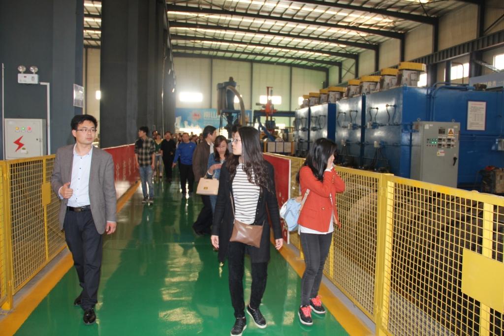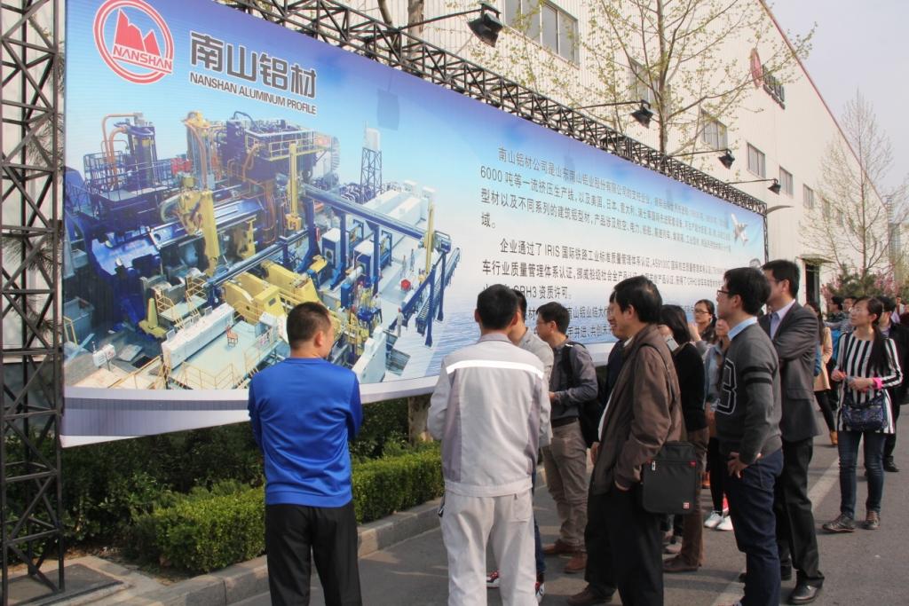 在南山铝业的生产车间,肖部长带领大家参观了冲压加工铝型材的生产过程并对企业的经营、管理思路做了详细介绍。