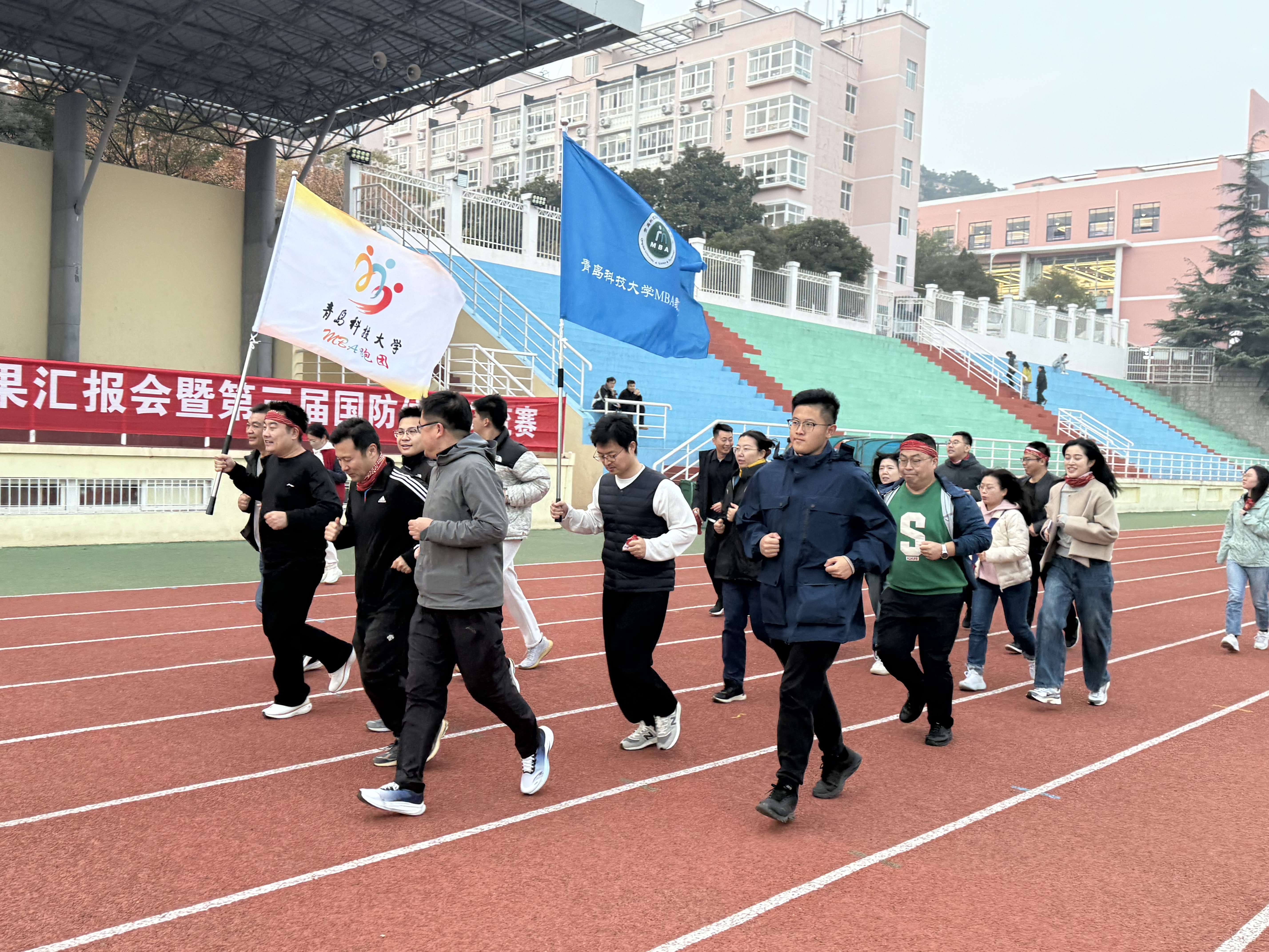 大会在全体与会人员合影后圆满落幕。为践行我校MBA“奔跑吧”跑团“活力、健康、同行”的宗旨,新任跑团团长周安虎随即组织跑团成员前往学校运动场,开展了一场别开生面的主题跑步活动。