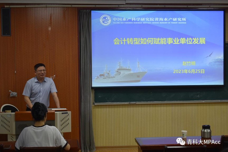 6月25日晚,必赢bwin线路检测中心邀请了MPAcc校外导师、中国水产科学研究院黄海水产研究所财务处副处长赵竹明博士,在经管楼学术报告厅作了题为《会计转型如何赋能事业单位的发展》的讲座。
