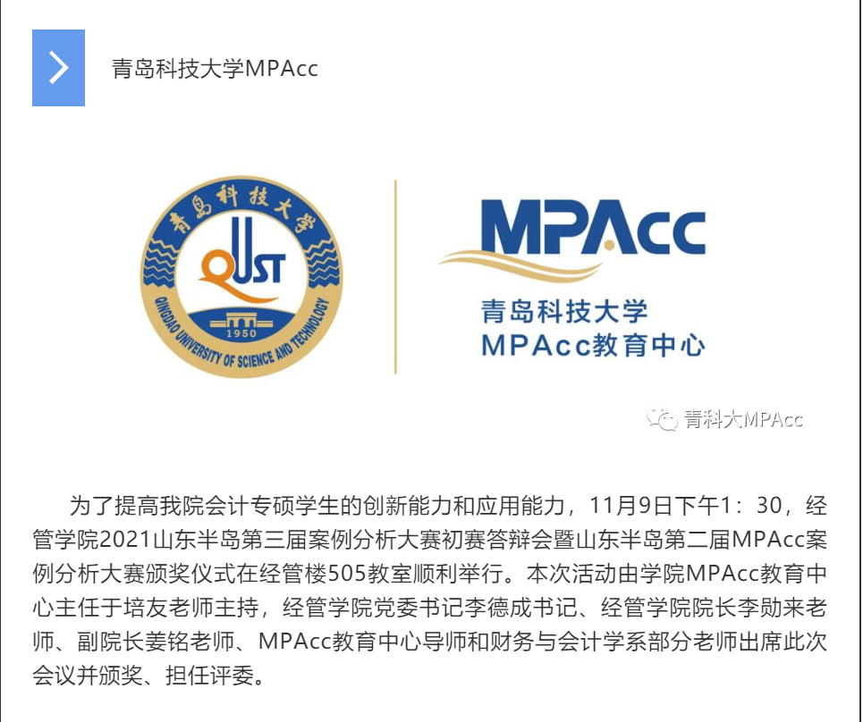 上一篇:青科大MPAcc大讲堂|《数字化时代 财务新担当-食材供应链行业智能财务实践》