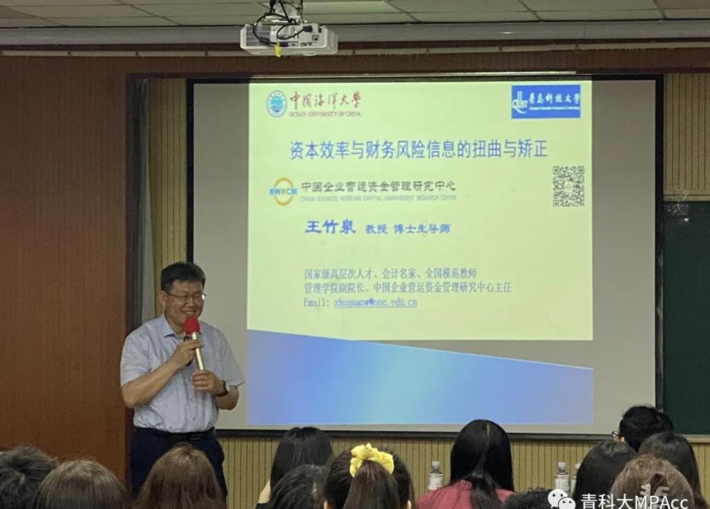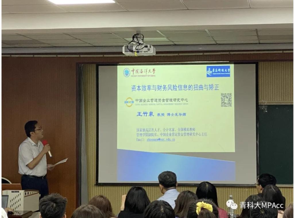 2021年6月9日晚间18:30,必赢bwin线路检测中心MPAcc教育中心于必赢bwin线路检测中心楼419教室,开展了MPAcc大讲堂主题讲座,本次讲座的主题是:资本效率与财务风险信息的扭曲与矫正,主讲人是中国海洋大学王竹泉教授。