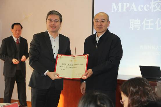 必赢bwin线路检测中心副校长陈克正代表学校向到会的19位MPAcc校外导师颁发了聘任证书。