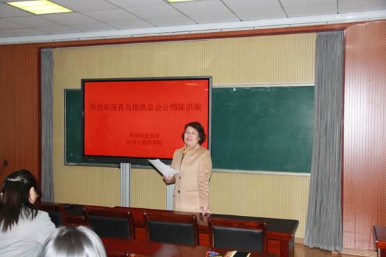 2017年11月21日晚上6点半,青岛地铁总会计师陈洪顺、博士做了题为“地铁产业链与商业生态”的学术报告会。报告由必赢bwin线路检测中心MPAcc中心主任刘树艳教授主持。MPAcc副主任张占贞、于培友等老师和全体MPAcc学生参加了此次报告会。